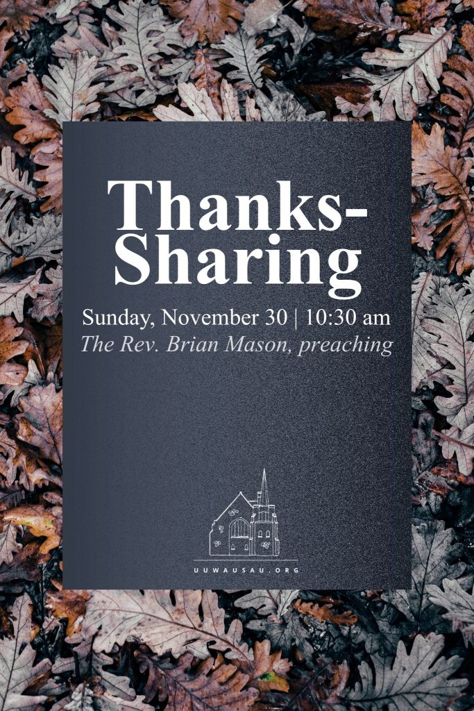 Join us this Sunday for our Thanks-Sharing Service, a time to reflect on gratitude and connection. After a brief homily, everyone will be invited to share words of thanks, joy, or appreciation—moments that remind us of the goodness we find in one another.