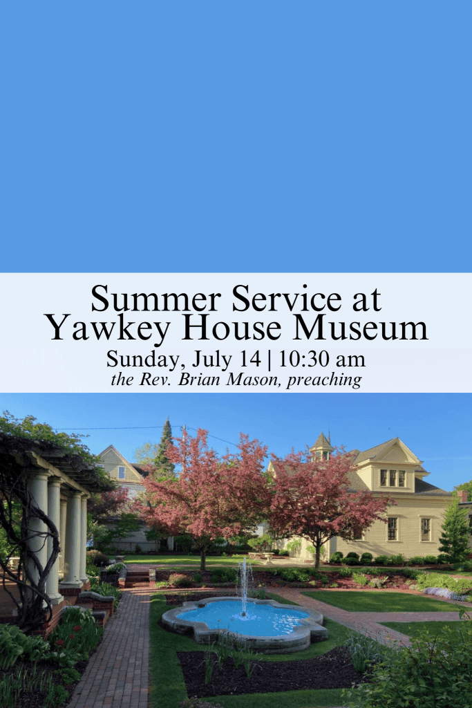 Join us at 10:30 AM in the beautiful Yawkey House gardens for a midmorning snack and a presentation by Rev. Brian Mason. Discover fascinating findings from the church archives, including insights on nuclear war, alien missionaries, and a former pastor’s letter feud with another congregation that eerily resembles today’s online banter. Don’t miss this opportunity to worship at the historic home, now a museum, of one of the church’s notable members!