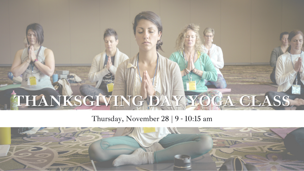 Before your holiday get-togethers begin, come to the atrium for yoga on Thanksgiving Day. Yoga instructor Gigi Heinz will lead slow flow yoga beginning at 9:00 a.m. and ending around 10:15. Bring yourself, bring a friend if you like, a yoga mat, blanket, and a non-perishable food item for the food pantry. Let’s unite in gratitude of our many blessings!